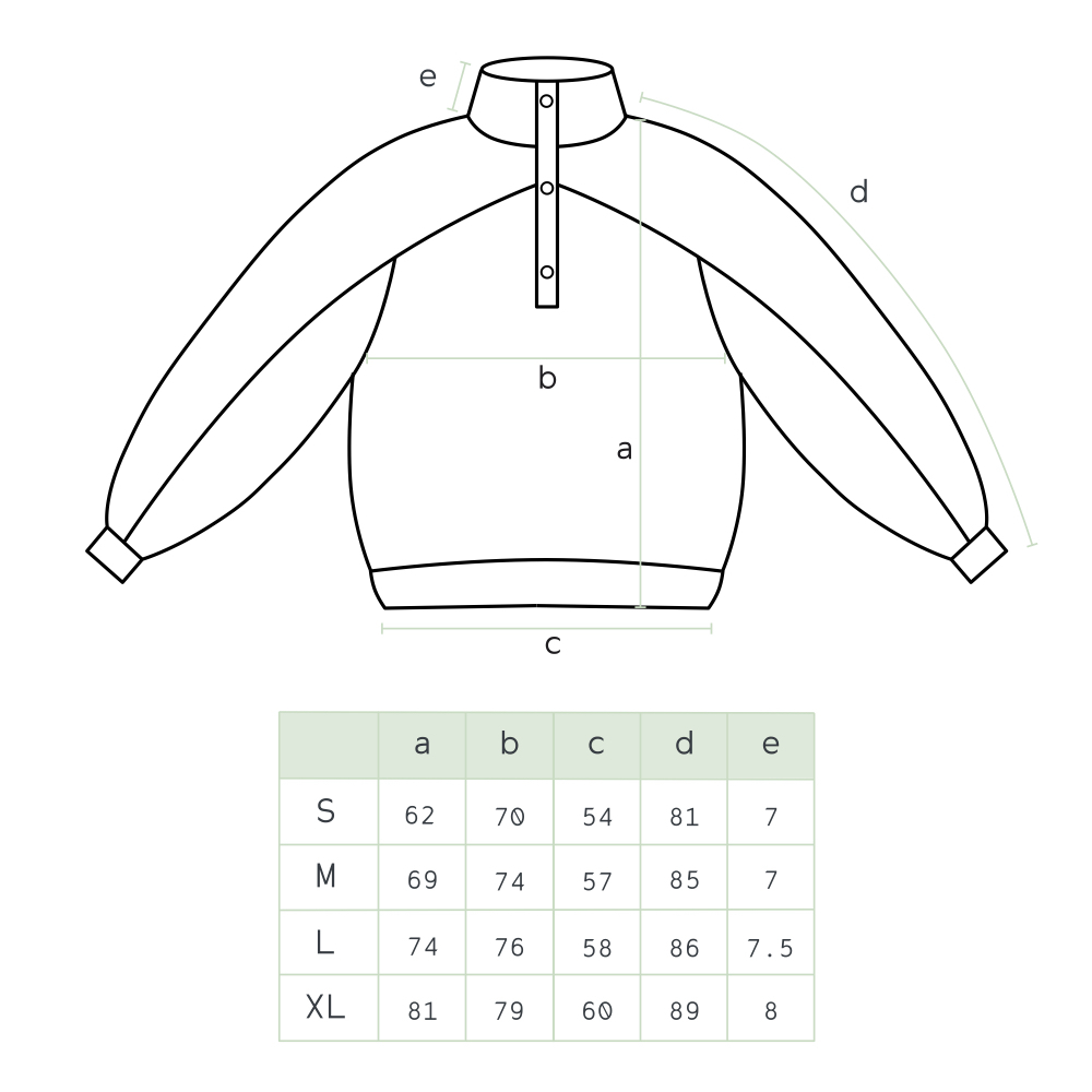 Очень плотный свитшот цвета травы с высокой горловиной на пуговицах и необработанными швами.